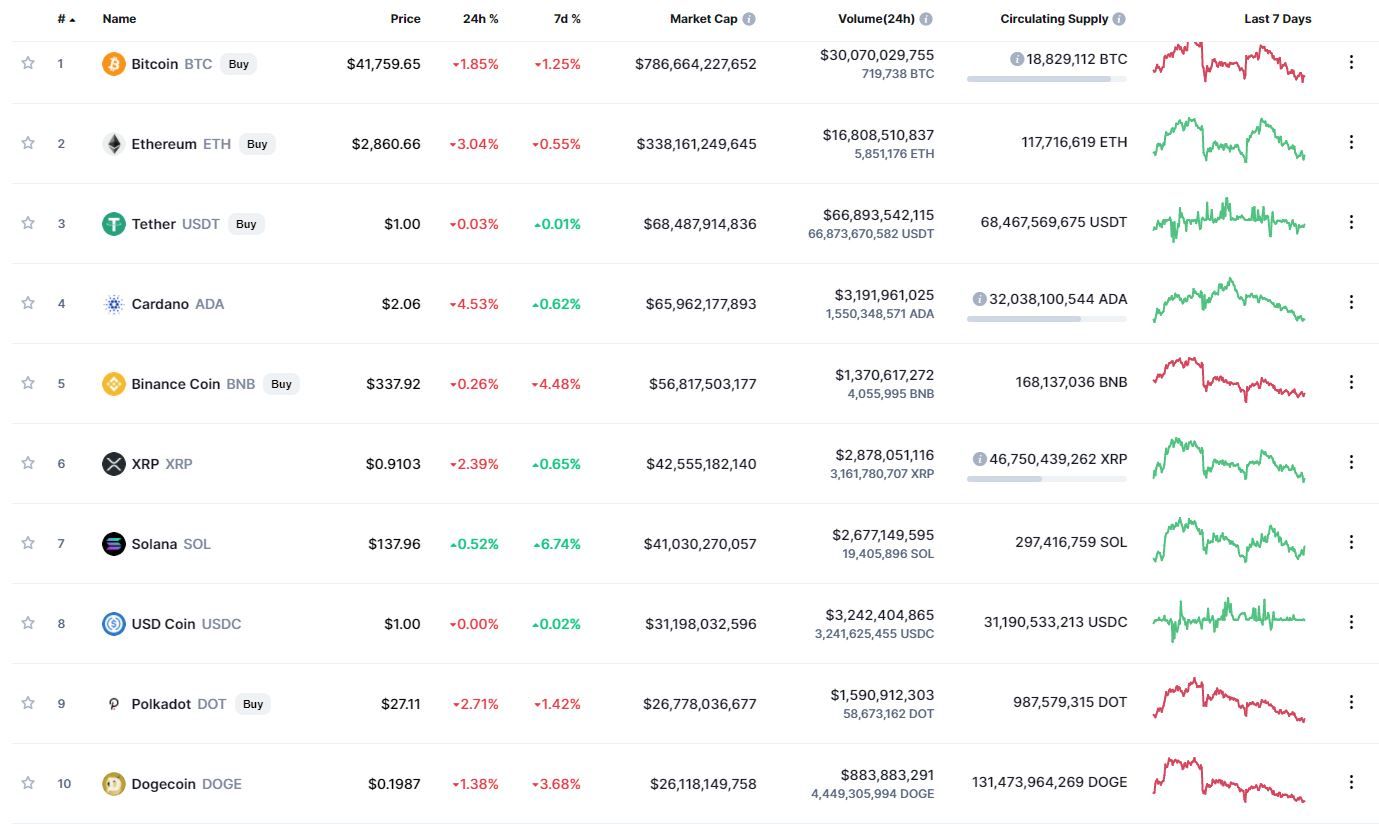 Поведение криптовалют – лидеров капитализации