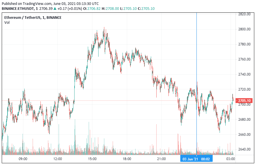 SponsoredВторая по капитализации криптовалюта – Ethereum – также начала день со роста, который быстро перешел в коррекцию. По состоянию на момент написания новости монета торгуется по $2705.