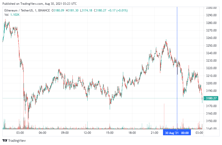 Вторая по капитализации криптовалюта – Ethereum – повторила траекторию движения биткоина. По состоянию на момент написания новости, монета торгуется по $3180.