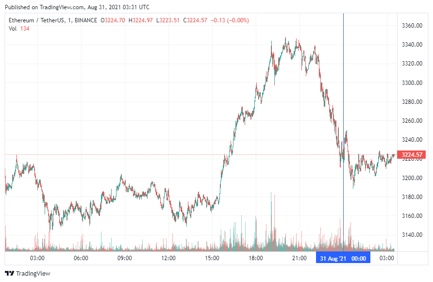 Вторая по капитализации криптовалюта – Ethereum – также начала день с восстановления. По состоянию на момент написания новости, монета торгуется по $3224.