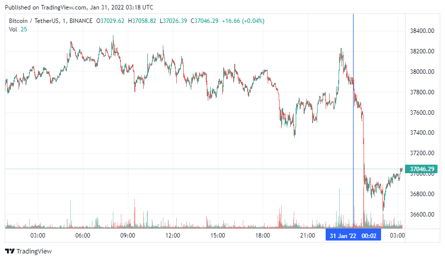 Биткоин (BTC) начал новую рабочую неделю с падения. По состоянию на 06:19 (МСК), криптовалюта торгуется по $37 046. Минимум стоимости биткоина за 24 часа, по данным ресурса CoinMarketCap, зафиксирован на уровне $36 733, максимум – на высоте $38 266.