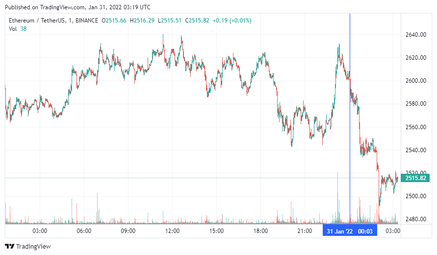 Вторая по капитализации криптовалюта Ethereum также начала день с падения. По состоянию на момент написания новости, монета торгуется по $2515.