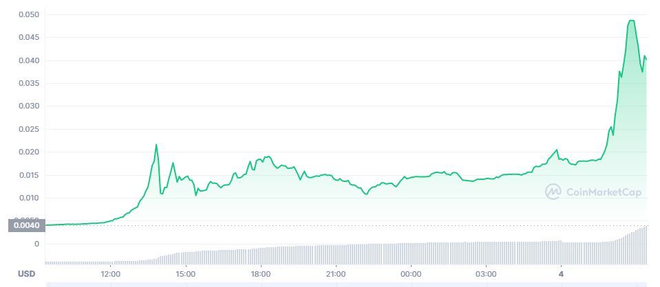 По состоянию на момент написания новости, токен торгуется по $0.04767, что эквивалентно росту курса криптовалюты за сутки на 1077.73% (по данным ресурса CoinMarketCap). Монета продемонстрировала позитивную динамику на фоне запуска расследования инцидента со стороны команды популярной криптобиржи Binance.