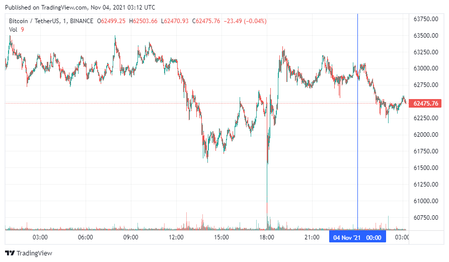 Биткоин (BTC) начал четверг с бокового движения. По состоянию на 06:13 (МСК), криптовалюта торгуется по $62 475. Минимум стоимости за 24 часа зафиксирован на уровне $61 184, максимум – на высоте $63 516.