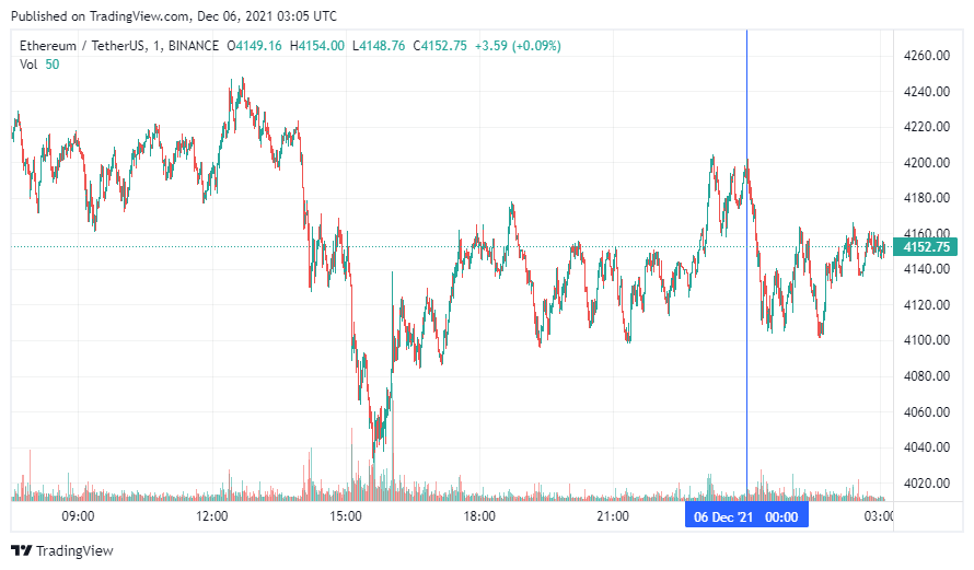 Вторая по капитализации криптовалюта Ethereum также начала понедельник с падения. По состоянию на момент написания новости, монета торгуется по $4152.