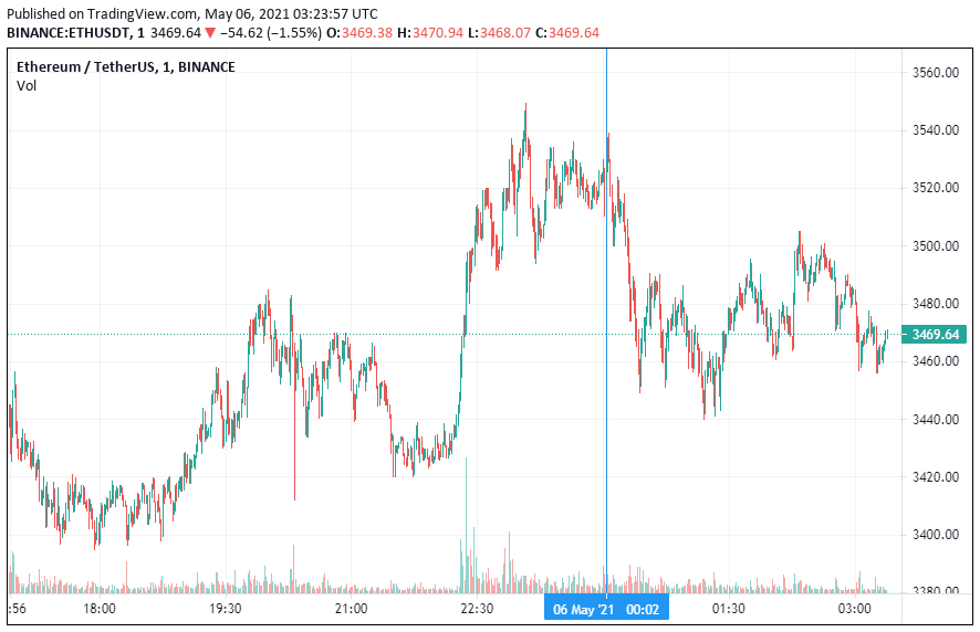 SponsoredВторая по капитализации криптовалюта – Ethereum – также начала четверг с небольшого падения. Коррекции предшествовало обновление абсолютного максимума стоимости. Новый пик, по данным ресурса CoinMarketCap, зафиксирован около 4 часов назад на высоте $3541.
