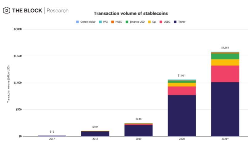- Объем ончейн-операций с самым капитализированным стейблкоином Tether впервые превысил $1 трлн. Аналитики The Block зафиксировали показатель на фоне добавления криптовалюты в листинг популярной биржи цифровых активов Coinbase.