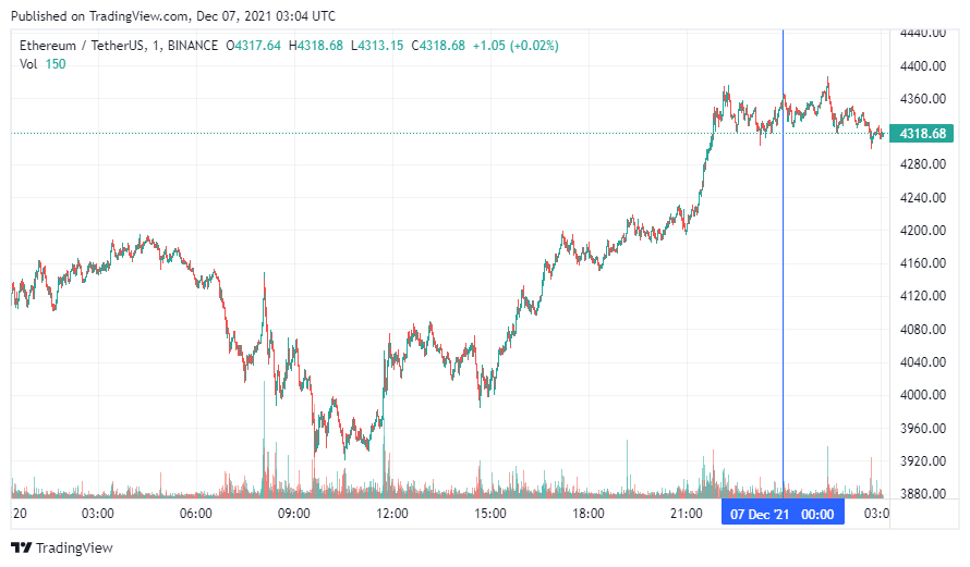 Вторая по капитализации криптовалюта Ethereum начала день с падения. По состоянию на момент написания новости монета торгуется по $4318.