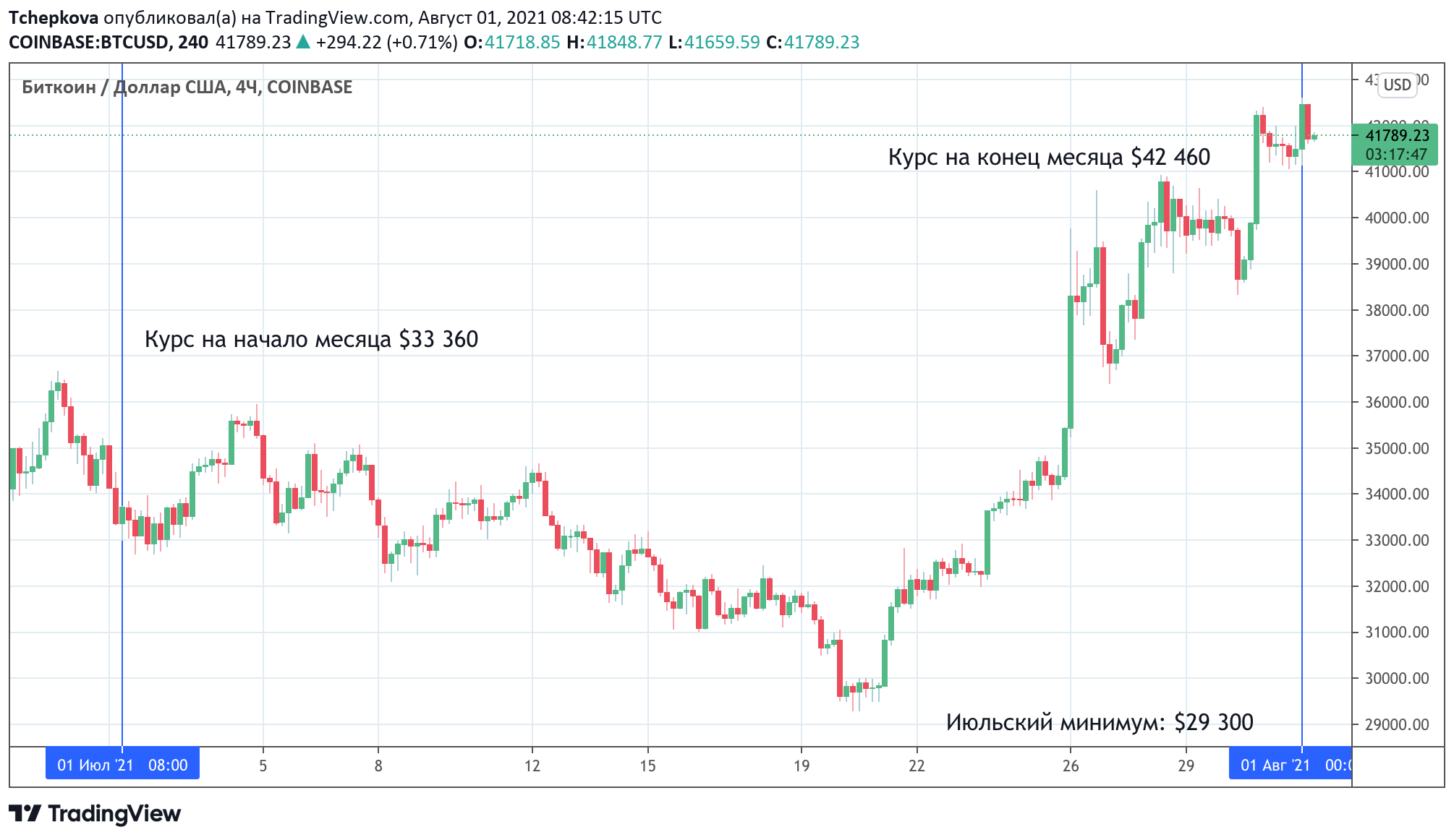 Июль стал месяцем резкого разворота на криптовалютном рынке. Биткоин пережил шорт-сквиз, удивив медведей, которые предвкушали падение до $25 000. Впрочем, негативный настрой в криптовалютном сообществе все еще в силе. Рыночная капитализация всех цифровых валют в обращении выросла с $1,4 трлн до $1,6 трлн. Своего максимума в месячном интервале рынок достиг 31 июля на отметке в $1,6 трлн.