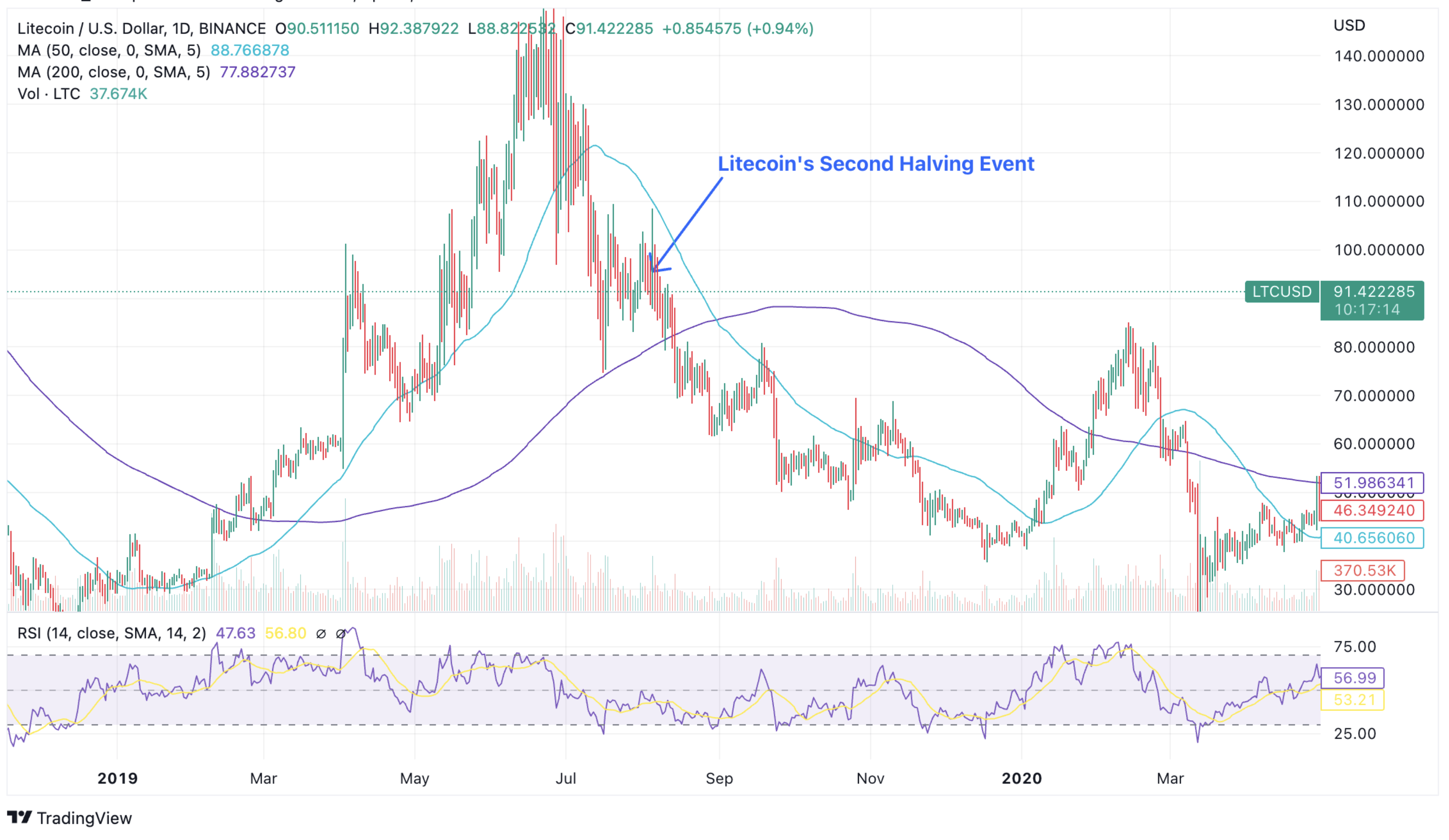 В 2019 году ситуация повторилась. За несколько недель до события Litecoin взлетел на 375% и достиг отметки $143. Сразу после этого его цена начала падать. Актив провел остаток года в медвежьем тренде и закончил его на уровне $40.