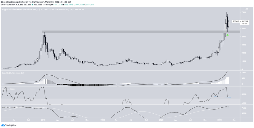 Рыночная капитализация альткоинов (ALTCAP) указывает на рост в этом сегменте рынка.