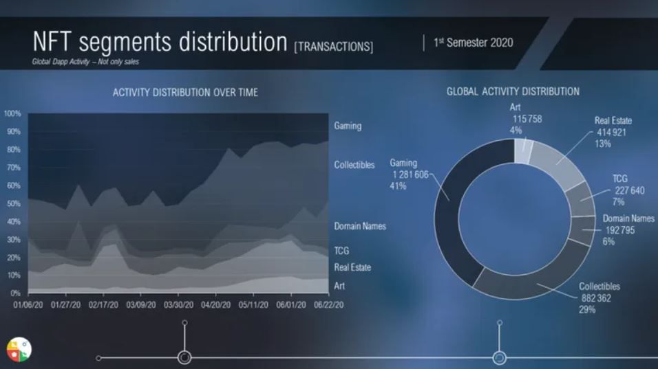 По состоянию на 1 сентября 2020 года, согласно данным платформы Nonfungible, все NFT-токены на рынке распределены следующим образом: