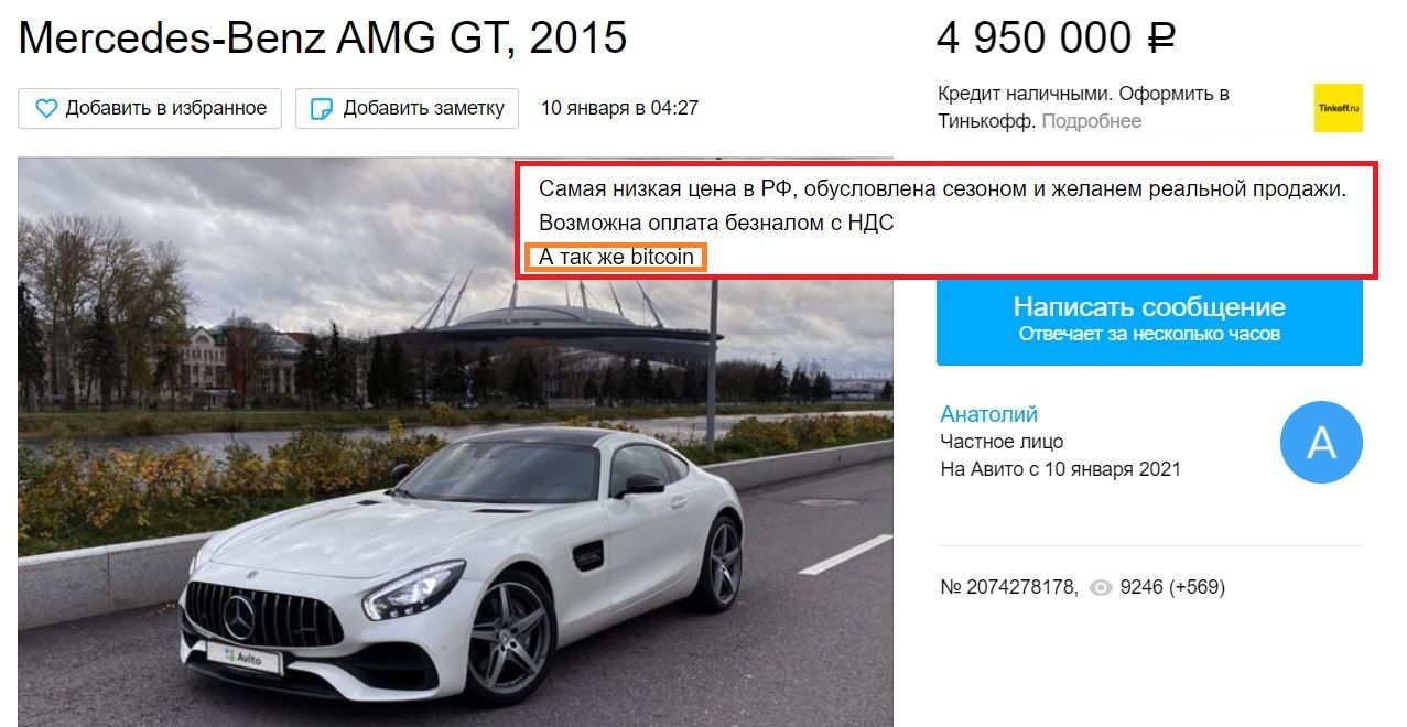 Не обошлось без объявлений о продаже авто за криптовалюту.