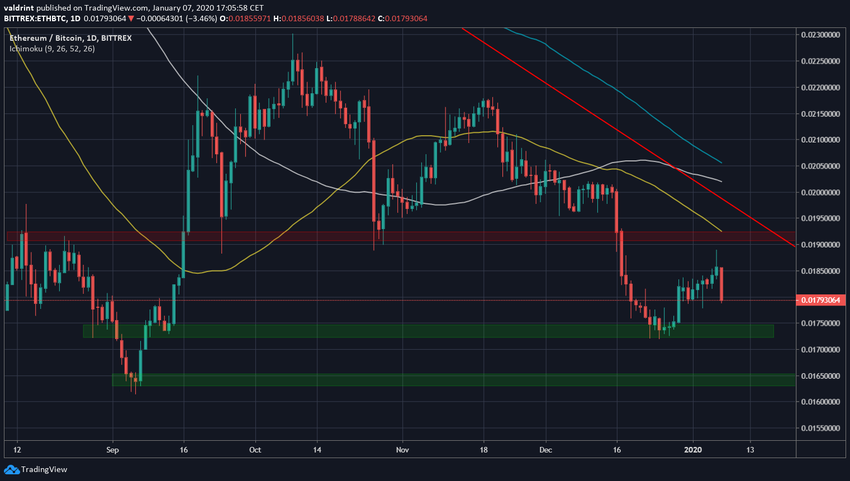 Если цена продолжит падать, следующая поддержка ожидается на уровне ₿0.011. Нисходящая линия поддержки дойдет до этого уровня в марте 2020 года.