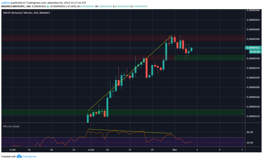 Подобный прирост особенно выигрышно смотрится на фоне биткоина (BTC), который выдавал плавную просадку. В результате курс MATIC/BTC оказался близок к достижению исторических максимумов.