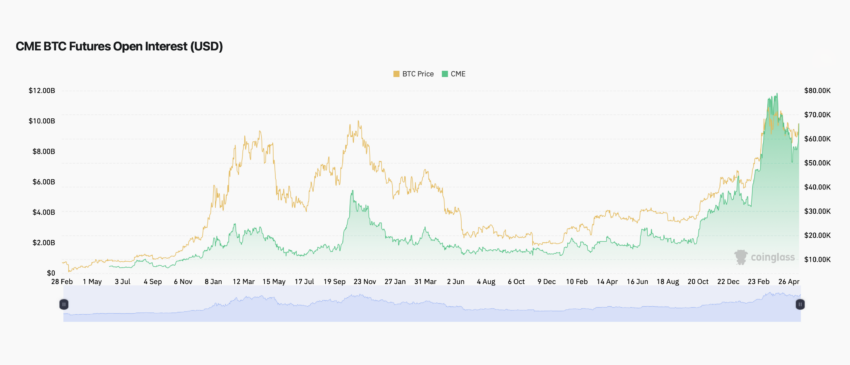 Сейчас CME — ведущая биржа по объему открытого интереса (ОИ) на биткоин-фьючерсы. На спотовом рынке доминирует Binance.