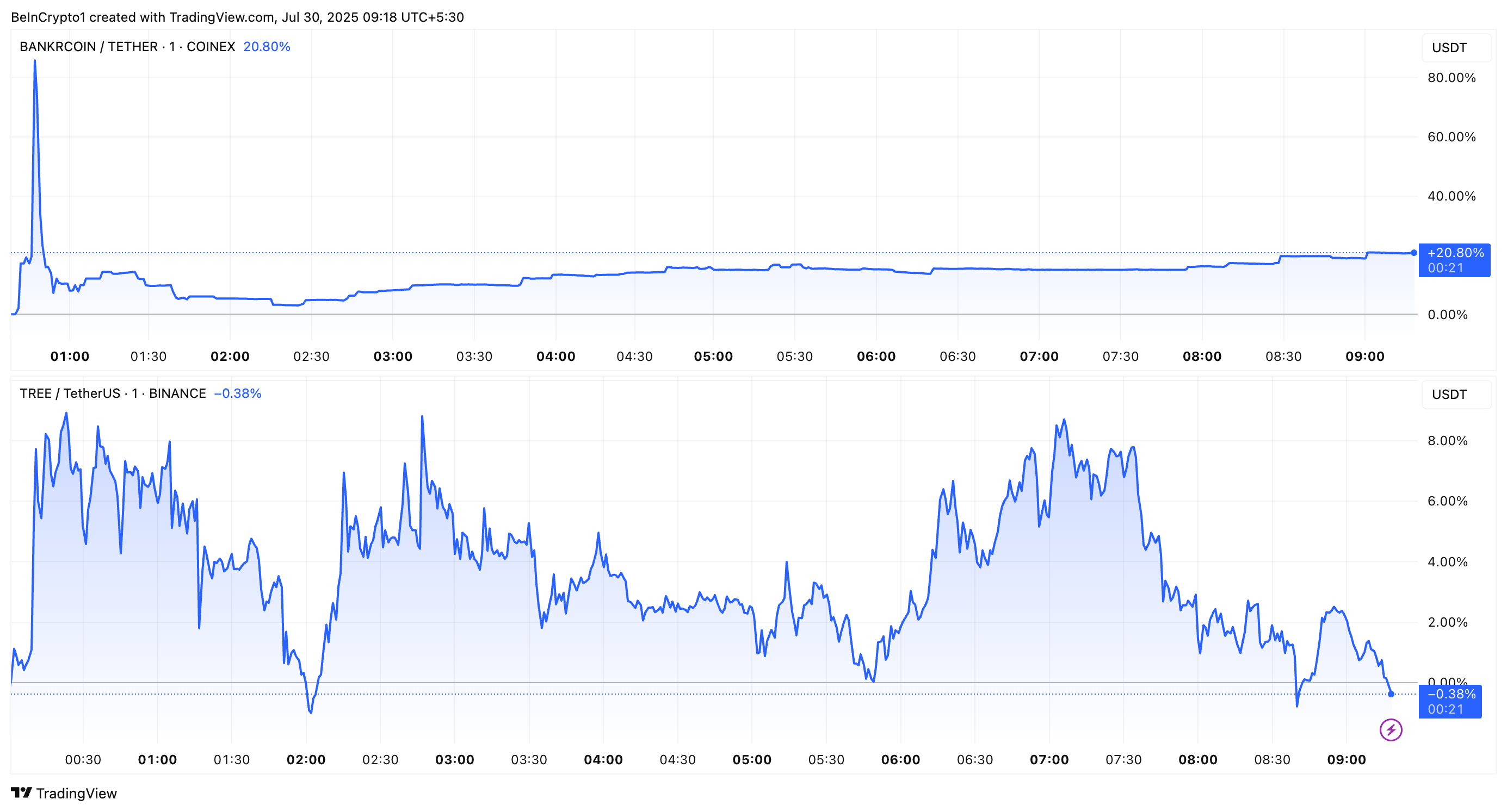 TREE, токен стандарта ERC-20, показал более скромный рост. Его стоимость увеличилась с $0,65 до $0,72, что составляет рост на 10,77%. Однако все эти достижения были утрачены, и на момент написания токен торговался по $0,64. Токен был запущен вчера и также смог получить листинг на Binance.
