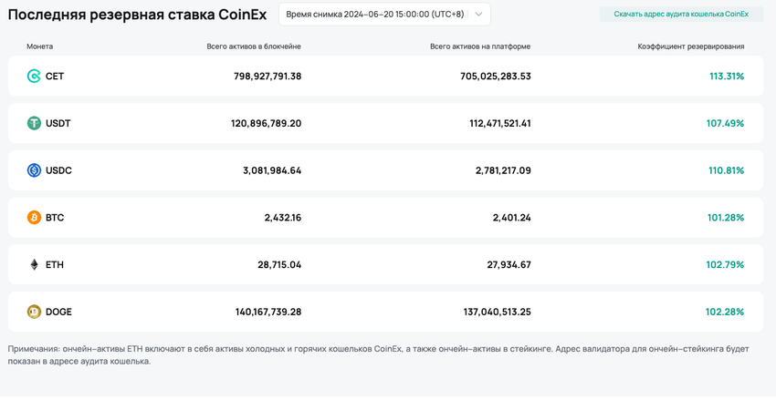 CoinEx — ведущая криптовалютная биржа — объявила об обновлении коэффициента резервирования активов 24 июня 2024 года 15:00 (UTC+8). Это обновление подчеркивает стремление CoinEx к повышению прозрачности, безопасности и доверия в криптовалютном сообществе.