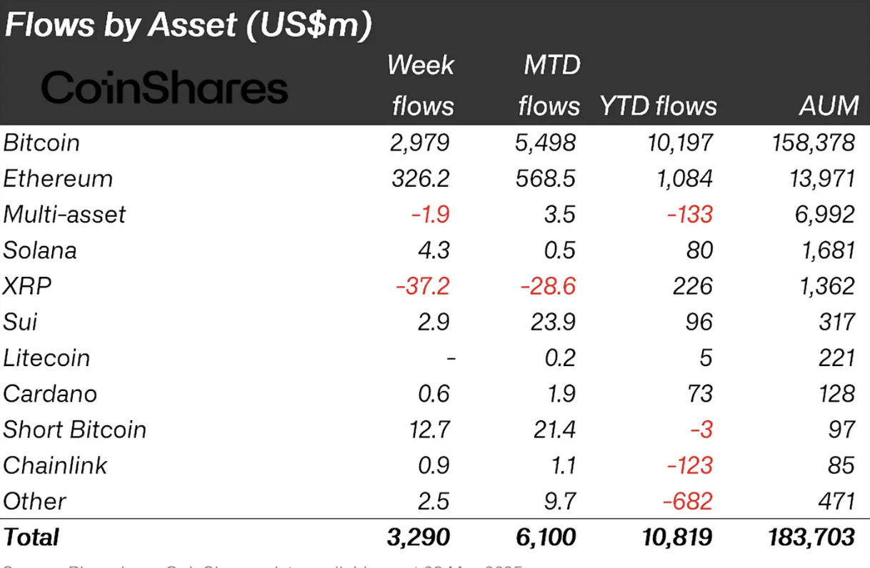 На прошлой неделе — с 19 по 23 мая — в инвестиционные продукты на базе криптовалют поступило $3,3 млрд