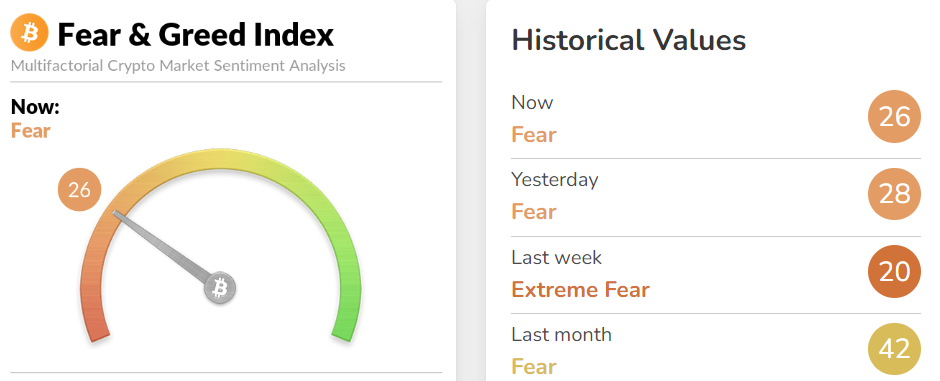 SponsoredСамого низкого значения рынок достигал 19 июня, когда индекс обвалился до 6 б.п., что равноценно «экстремальному страху». Тогда биткоин (BTC) торговался в паре BTC/USD на уровне ~$23 000, а ether (ETH) в паре ETH/USD у отметки в $1 520.