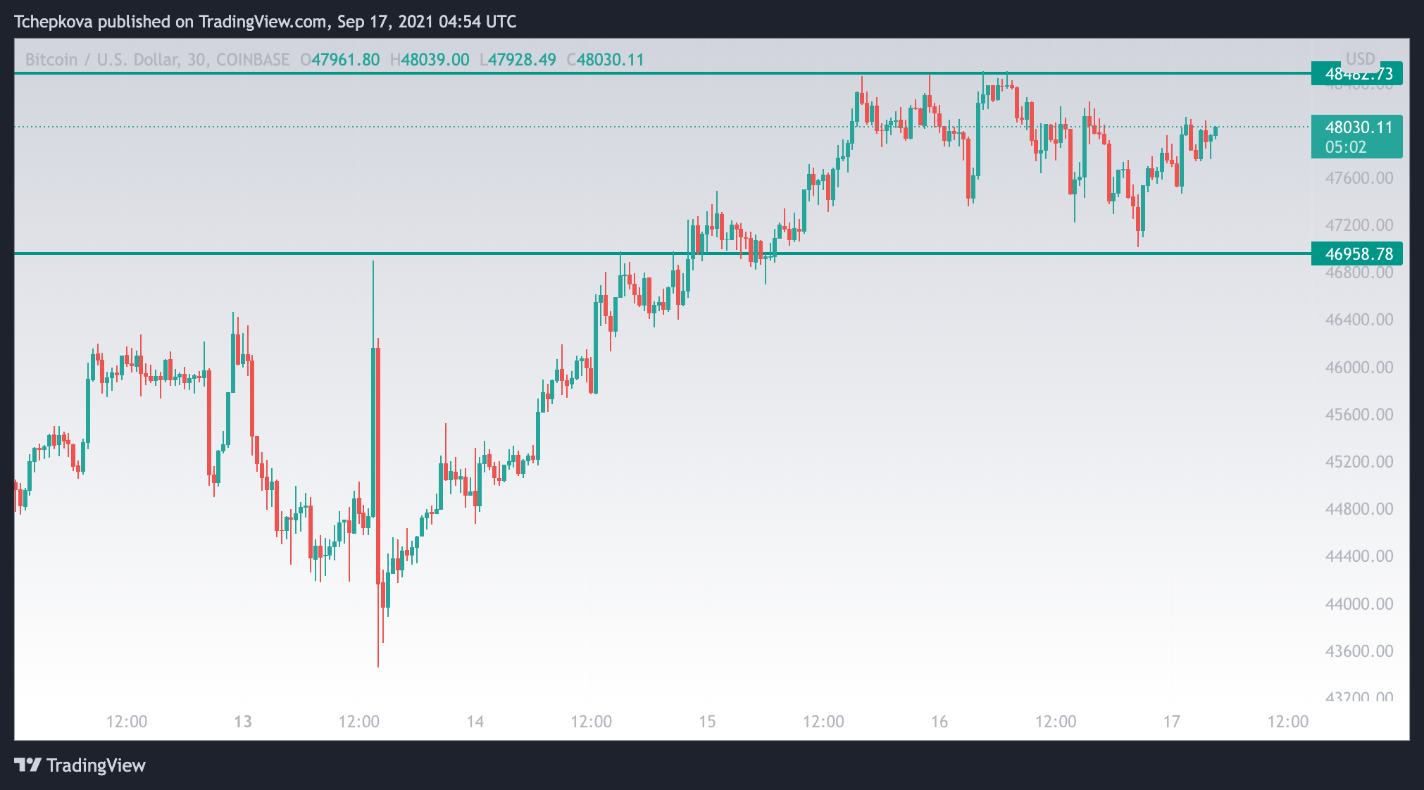 Биткоин (BTC) затормозил на подходе к локальному сопротивлению $48 500. Несколько безуспешных попыток пробиться выше отбросили его в диапазон. Утром 17 сентября главная криптовалюта консолидируется в диапазоне $48 500-$47 000. За сутки курс BTC/USD почти не изменился, за неделю — вырос на 3%. На момент публикации BTC/USD торгуется на уровне $48 000.