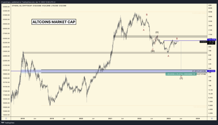 Несмотря на то, что биткоин (BTC) демонстрирует впечатляющий рост с начала 2023 года, известный криптотрейдер под псевдонимом CryptoCapo продолжает придерживаться медвежьего сценария.