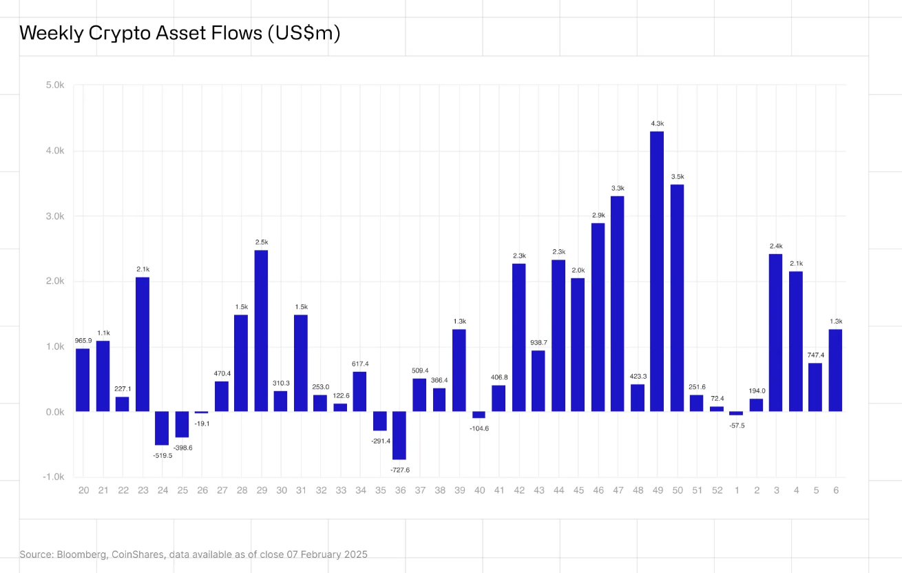 На прошлой неделе — с третьего по седьмое февраля — в криптофонды поступило $1,3 млрд