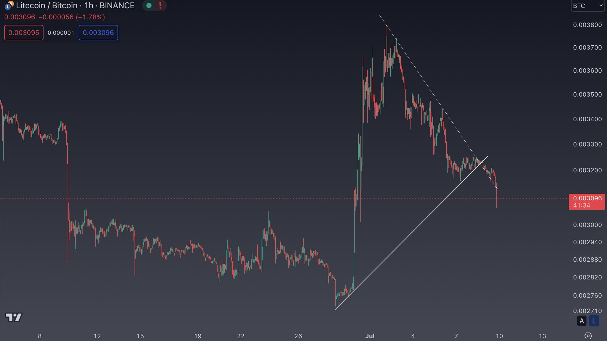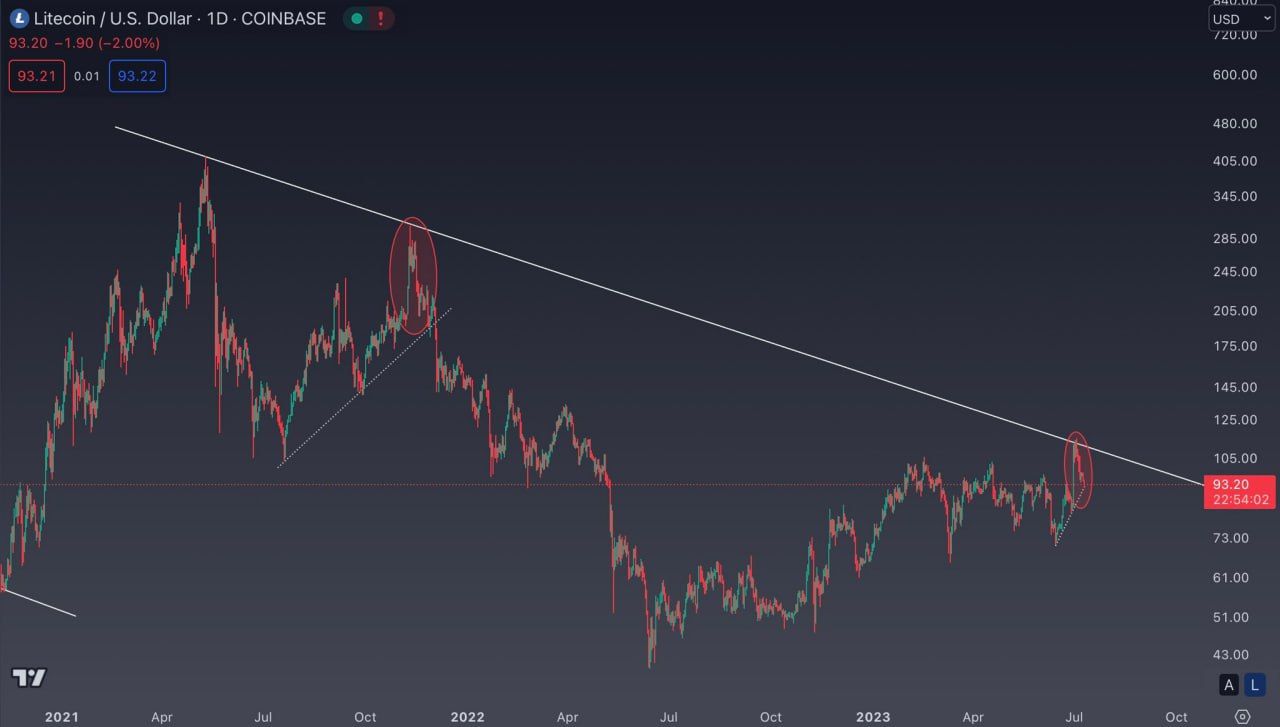 Однако известный криптоаналитик @CryptoKaleo, которого в «Твиттере» читают более 593 тыс. пользователей, привел ряд убедительных доводов в пользу коротких позиций по Litecoin. Он отметил, что актив не смог пробить долгосрочную нисходящую линию сопротивления, что указывает на усиление давления продавцов.
