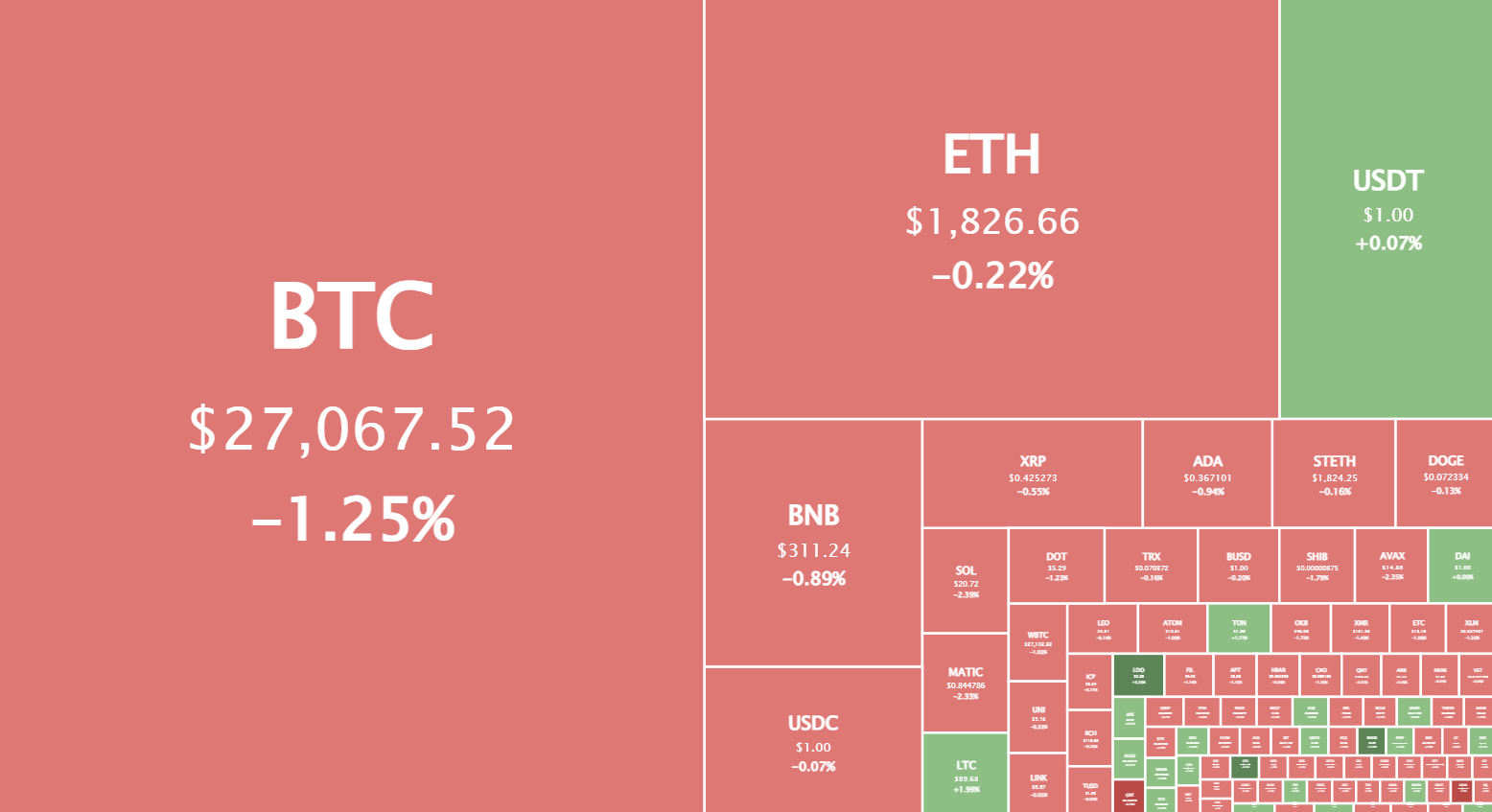 Сегодня на криптовалютном рынке снова царят медвежьи настроения. Большинство криптовалют, включая биткоин (BTC) и Ethereum (ETH), снизились в цене по итогам дня.