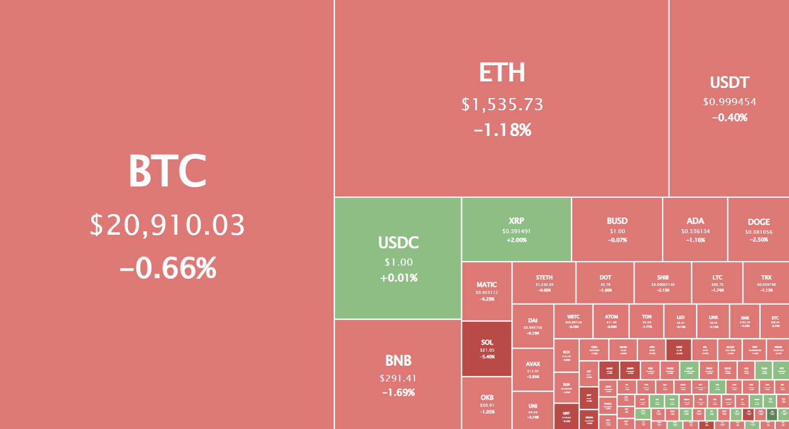 Сегодня на криптовалютном рынке снова царят медвежьи настроения. Большинство криптовалют, включая биткоин (BTC) и Ethereum (ETH), снизились в цене по итогам дня.