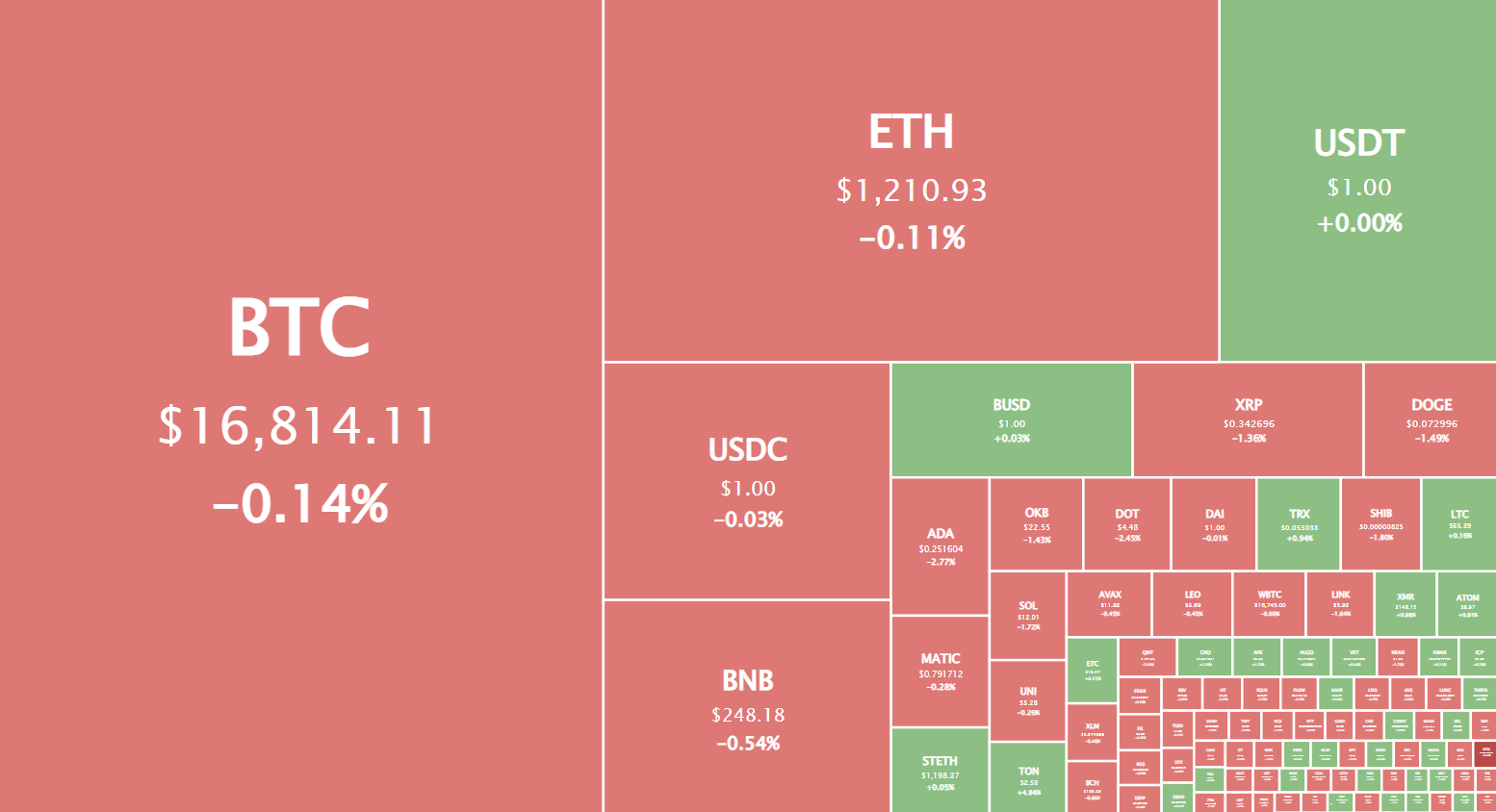 Сегодня на криптовалютном снова преобладают медвежьи настроения. Большинство криптовалют, включая биткоин (BTC) и Ethereum (ETH), снизились в цене по итогам дня.