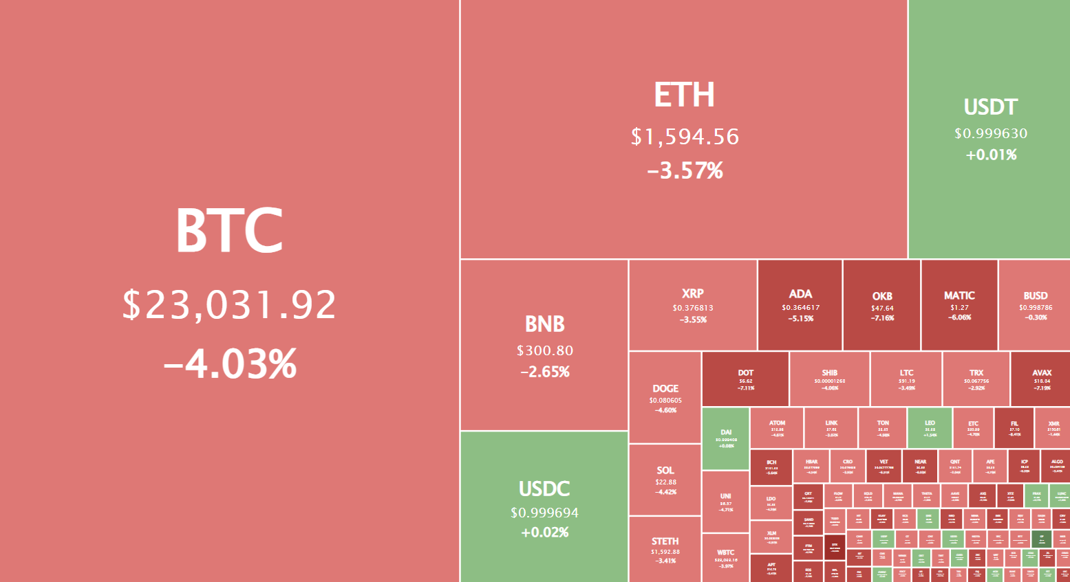 Текущий курс биткоина к доллару — $23,049.00