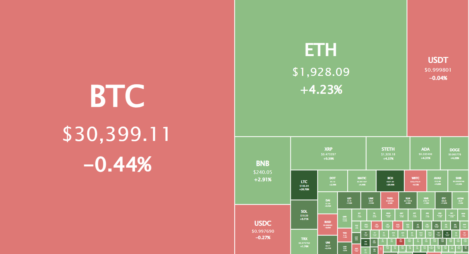 Сегодня криптовалютный рынок демонстрирует разнонаправленную динамику. Некоторые криптовалюты, включая биткоин (BTC), показали незначительное снижение. Ethereum (ETH) и другие активы, напротив, выросли в цене по итогам дня.