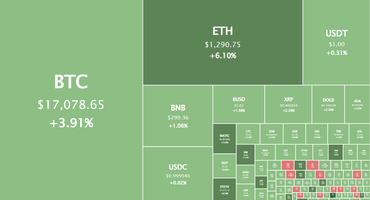 Сегодня на криптовалютном рынке просыпаются бычьи настроения. Большинство криптовалют, включая биткоин (BTC) и Ethereum (ETH), выросли в цене по итогам дня.