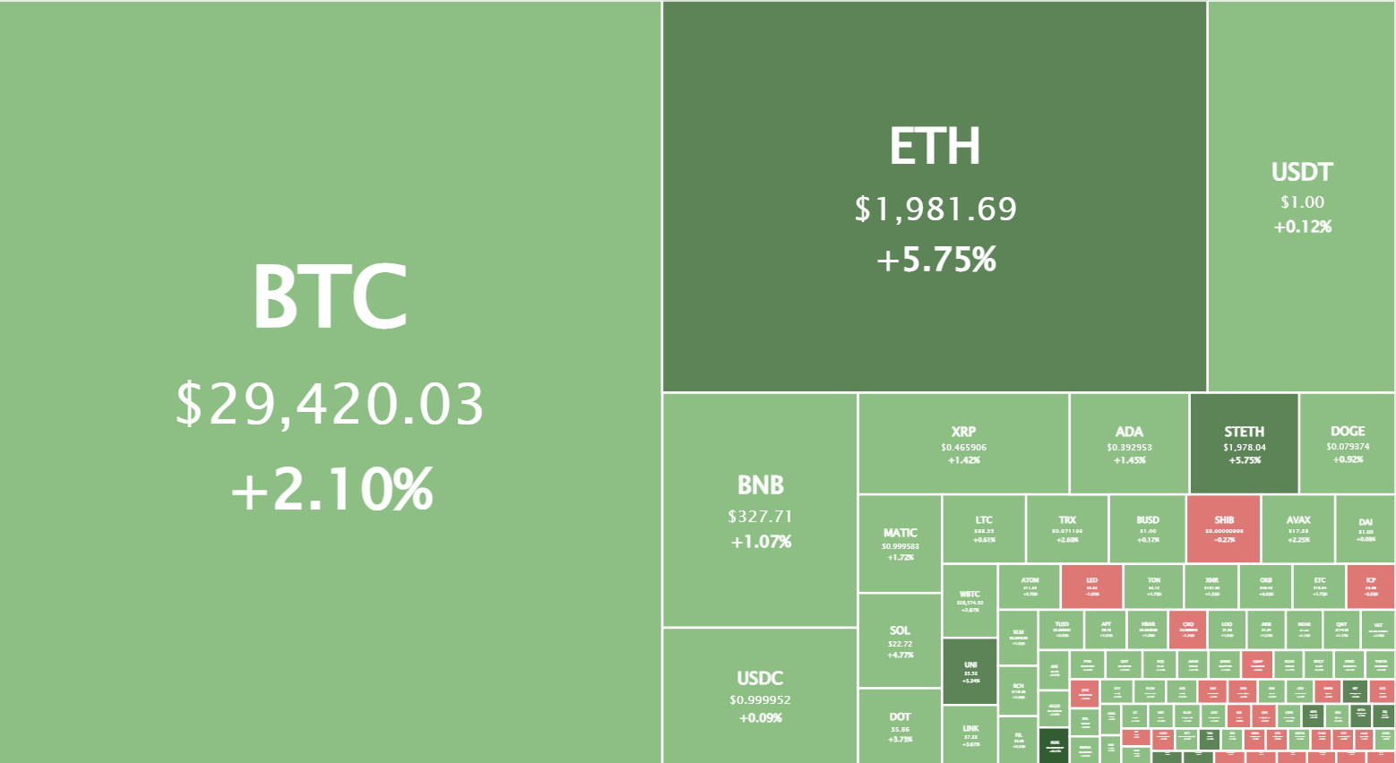 Сегодня на криптовалютном рынке просыпаются бычьи настроения. Большинство криптовалют, включая биткоин (BTC) и Ethereum (ETH), выросли в цене по итогам дня.