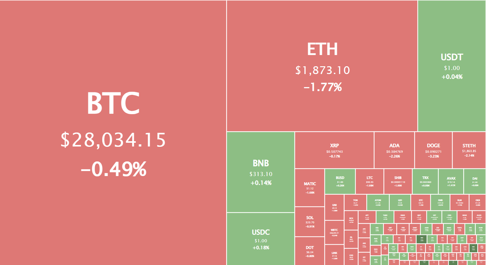 Сегодня на криптовалютном рынке снова царят медвежьи настроения. Большинство криптовалют, включая биткоин (BTC) и Ethereum (ETH), снизились в цене по итогам дня.