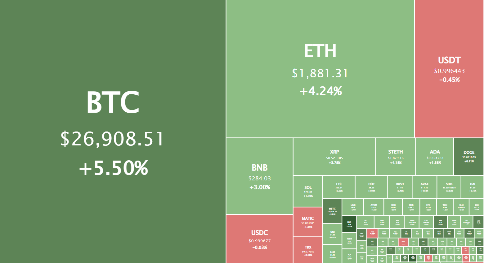 Сегодня на криптовалютном рынке просыпаются бычьи настроения. Большинство криптовалют, включая биткоин (BTC) и Ethereum (ETH), выросли в цене по итогам дня.