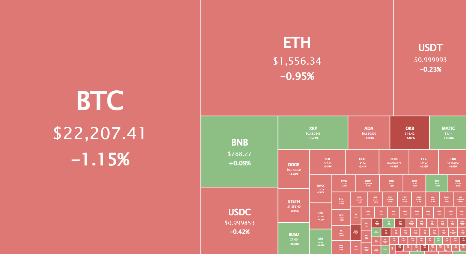 Сегодня на криптовалютном рынке снова царят медвежьи настроения. Большинство криптовалют, включая биткоин (BTC) и Ethereum (ETH), снизились в цене по итогам дня.