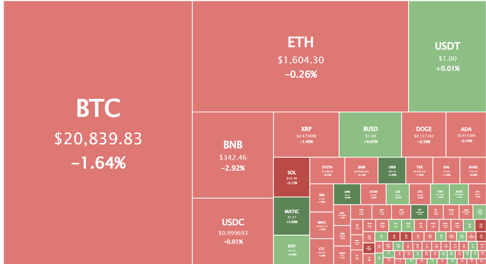 Сегодня на криптовалютном рынке по-прежнему доминируют медвежьи настроения. Большинство криптовалют, включая биткоин (BTC) и Ethereum (ETH), снизились в цене по итогам дня.