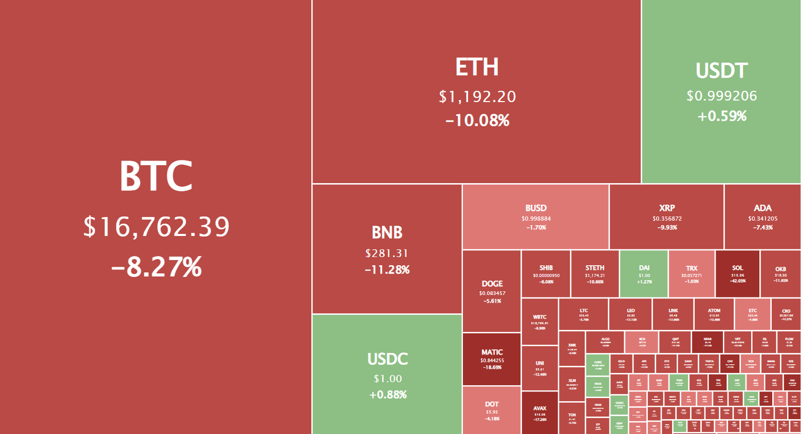Сегодня на криптовалютном рынке по-прежнему доминируют медвежьи настроения. Большинство криптовалют, включая биткоин (BTC) и Ethereum (ETH), значительно упали в цене по итогам дня.