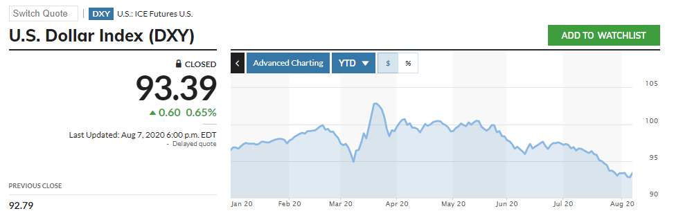 На момент написания материала, индекс доллара США составляет не только годовой, но и двухлетний минимум на отметке 93.39.