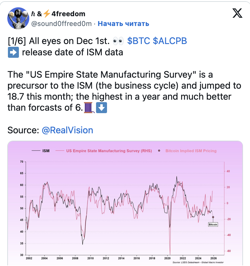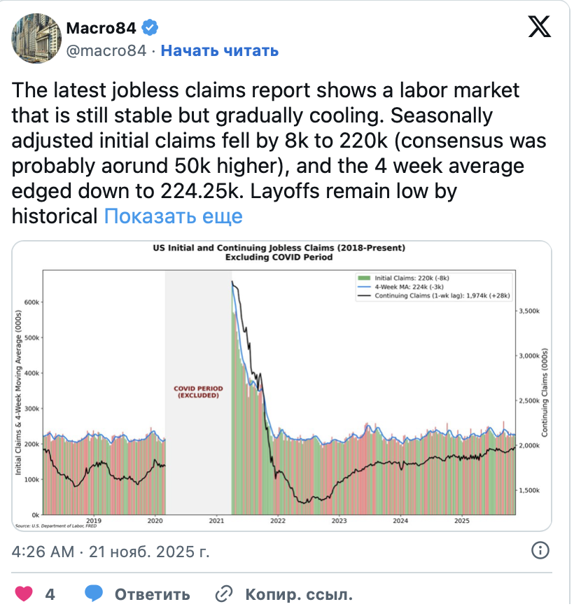 График публикаций имеет особое значение из-за предстоящего Дня благодарения. Традиционные рынки будут закрыты в четверг и будут работать по сокращенному графику в пятницу. Это может усилить волатильность, если данные среды преподнесут сюрприз. Поскольку биткоин торгуется круглосуточно, реакция на новости в условиях «тонкого» рынка может быть более резкой.
