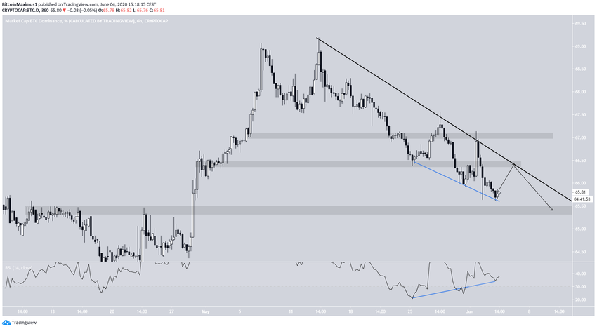 Таким образом, индекс доминирования биткоина (BTCD) может совершить краткосрочный отскок, однако в более долгосрочной перспективе его динамика будет оставаться бычьей до тех пор, пока рынок не совершит бычий пробой уровня 68.4%.