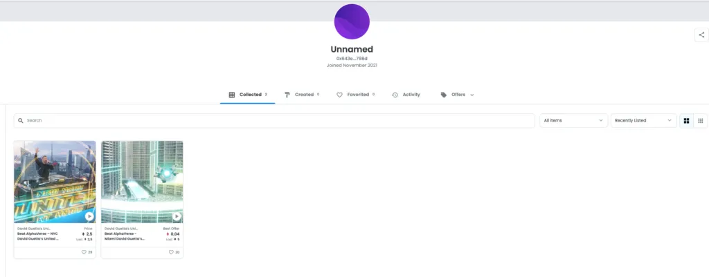Диджей не прояснил, сколько именно он заработал на продаже NFT. Однако редакции BeInCrypto удалось найти страницу на OpenSea, которая подходит по заявленным торговым объемам и тематике. Впрочем, на нее официально не ссылаются ни в пресс-релизе компании-организатора, ни сам Гетта. Токены выполнены в виде анимированных отрывков с выступлениями французского диджея.