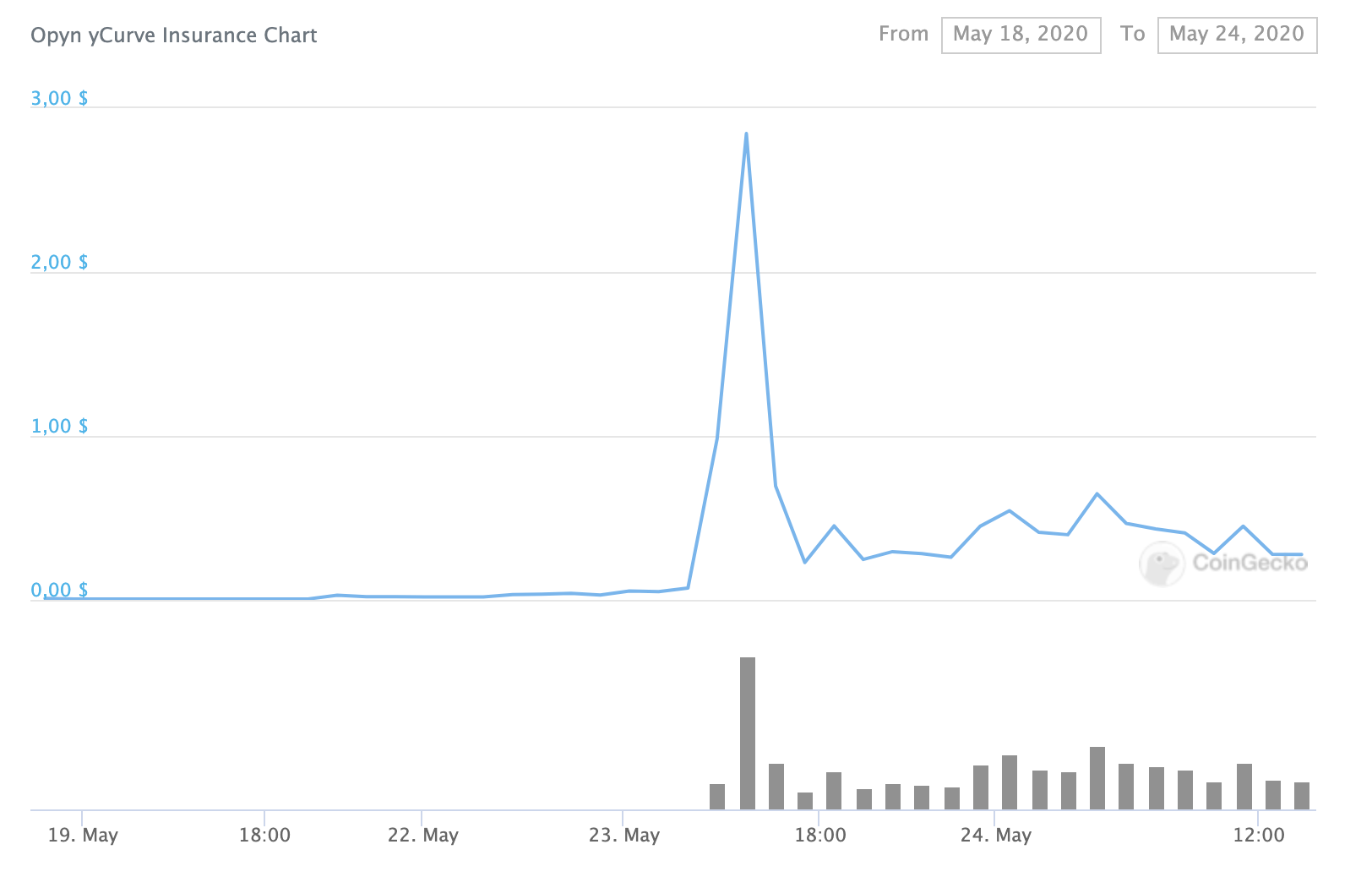 Никому не известный токен Opyn y.curve Insurance (OCRV) беспричинно за два часа подорожал более чем на 10 000%. OCDAI привязан к DeFi-протоколу Opyn, который представляет собой платформу для страхования своих депозитов в DeFi проектах от финансовых и технических рисков.