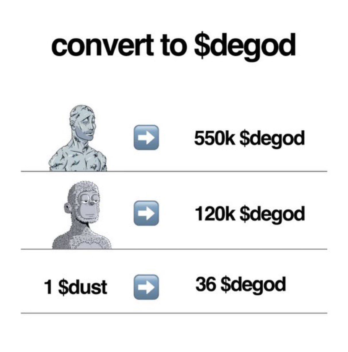 - 1 DeGods можно обменять на 550 000 DEGOD;