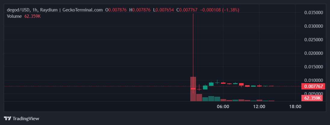 SponsoredПо данным CoinGecko, на момент написания материала цена DEGOD составляет $0,007833.
