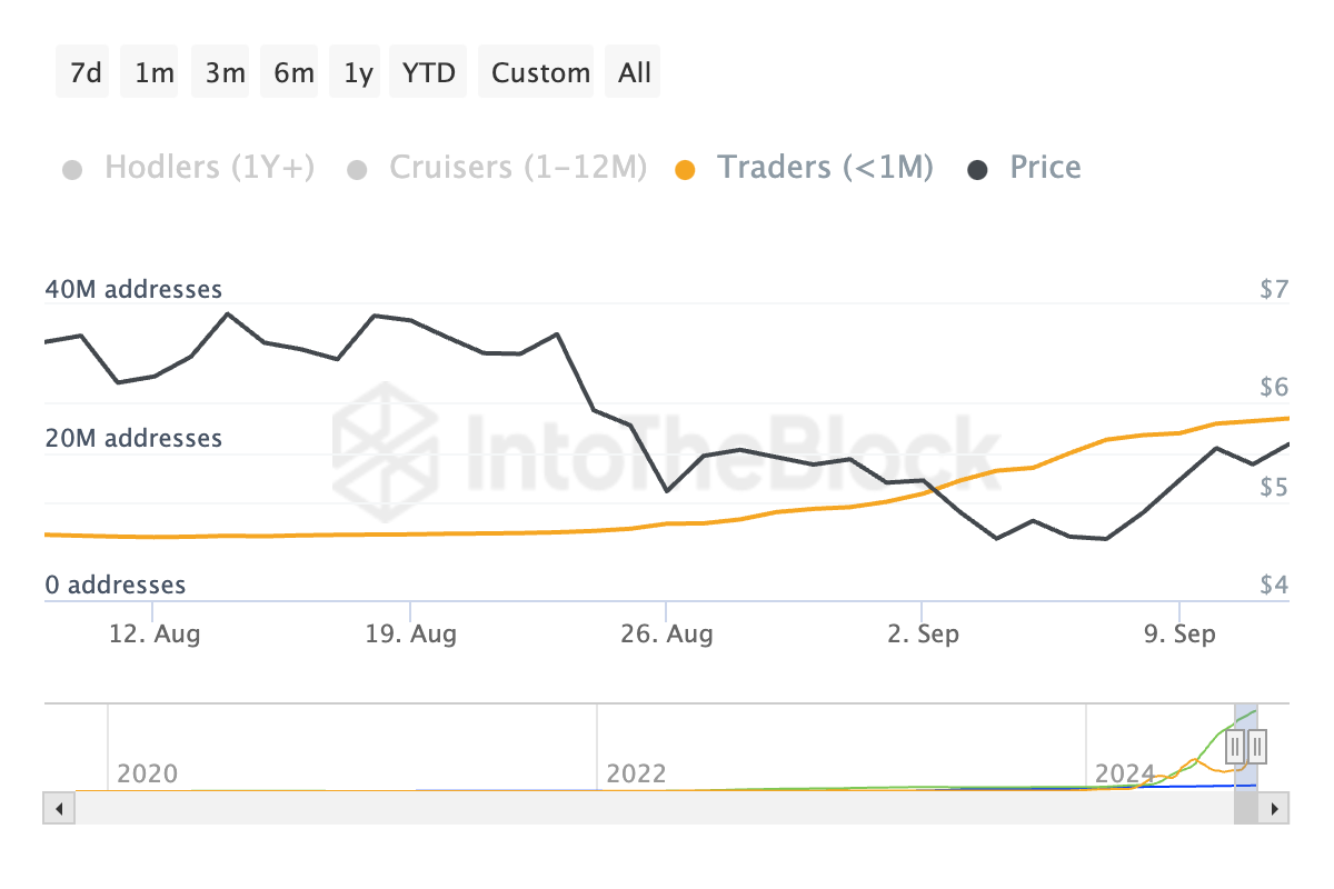 На фоне изменения прибыльности изменилась и стратегия краткосрочных держателей криптовалюты. По данным IntoTheBlock, многие адреса, купившие Toncoin в прошлом месяце, теперь хранят его вопреки желанию продать и зафиксировать прибыль.