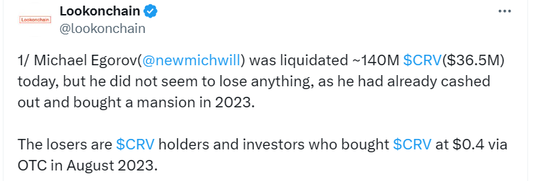 Аналитики Lookonchain считают, что единственными пострадавшими в этой ситуации оказались инвесторы CRV, так как бизнесмен успел все обналичить еще в 2023 году через покупку недвижимости. На это, по наблюдениям авторов канала, указывает история транзакций Егорова.