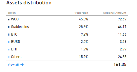 Более того, как заметил журналист, почти половина (45%) резервов децентрализованной биржи состоит из токена самой же площадки — WOO. Еще 25% приходится на стейблкоины. На биткоин (BTC) и ether (ETH) приходится всего лишь 7,2% и 1,9% соответственно.